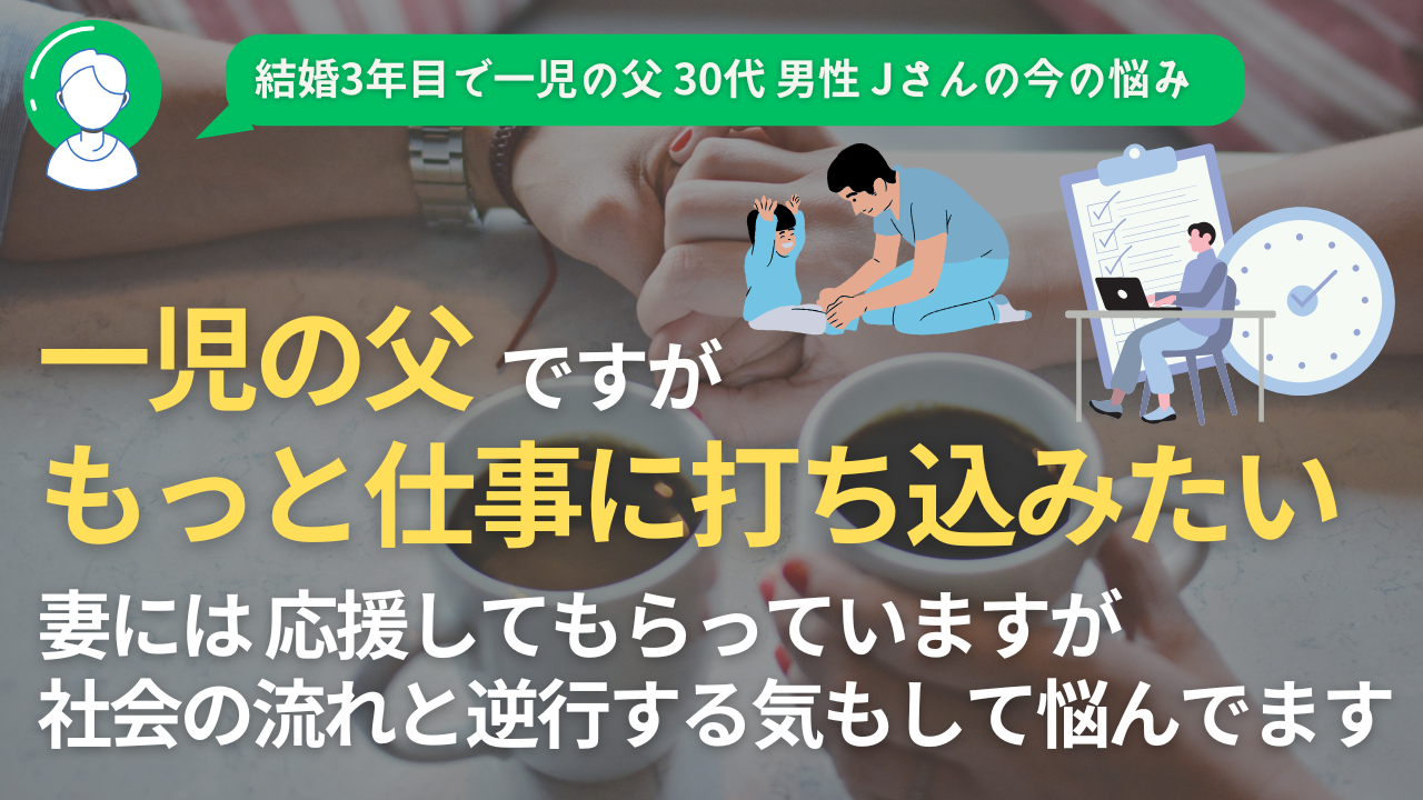 なるほど。今聞いて私が思ったのは、私の観点でしかないのですが、他からの目、社会の目、例えば、お取引先と飲み会に行きました。Jさんがお子さんがいることは、先方も知っています。